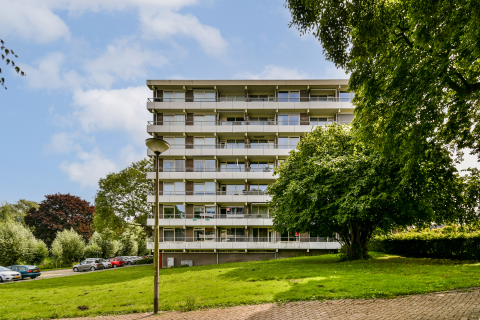 De woonkamer is opvallend licht dankzij de grote raampartijen en biedt een vrij uitzicht. Aangrenzend ligt het balkon op het westen, waar in de middag en avond volop van de zon genoten kan worden. De halfopen keuken is functioneel ingericht en biedt voldoende opbergruimte. Er zijn twee slaapkamers aanwezig, evenals een ruime badkamer en een aparte berging met aansluitingen voor wasapparatuur.